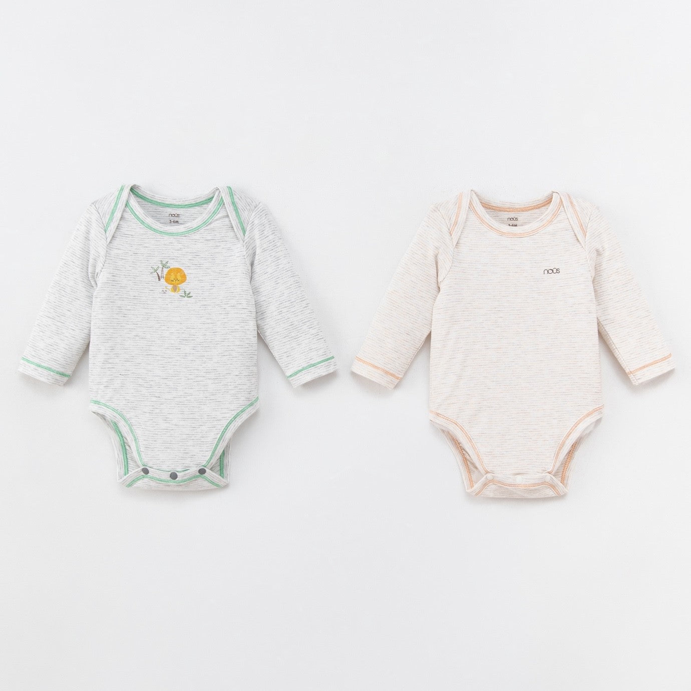 The set of two bodysuits is designed to provide warmth and protection to the baby's chest and belly, which are sensitive areas that can be affected by changes in weather and the environment. These bodysuits are specifically crafted to offer optimal coverage and insulation to keep the baby comfortable.