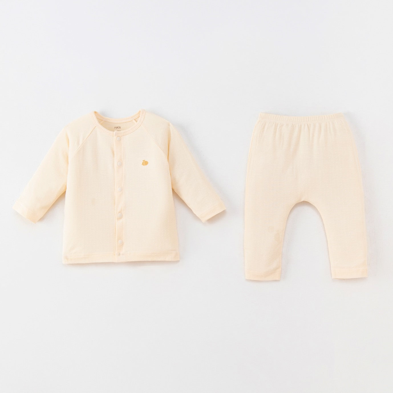 The straight snaps used in the design of this outfit make it quick and easy for mothers to change their babies' clothes. These snaps are conveniently placed along the closure of the outfit, allowing for hassle-free and efficient dressing and undressing of your baby. With a simple and straightforward snap mechanism, you can easily secure or release the snaps, making diaper changes or outfit changes a breeze.