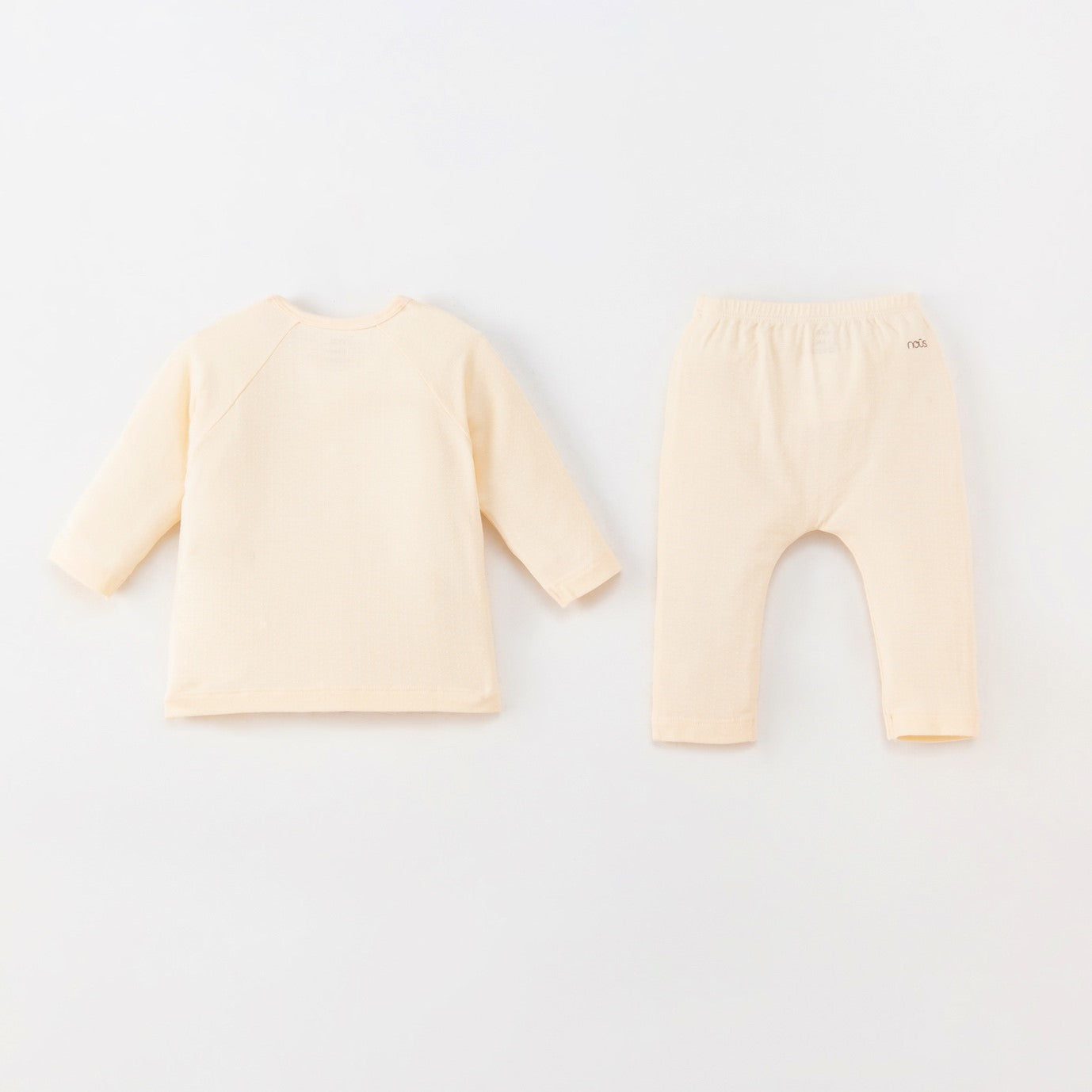 Made from Nu Doux fabric, known for its softness and breathability, this set ensures comfort for the baby. The fabric is made of a main cellulose fiber component that provides a cool and smooth silk-like feel. It is designed to be gentle and skin-friendly, providing a comfortable touch against the baby's delicate skin.