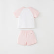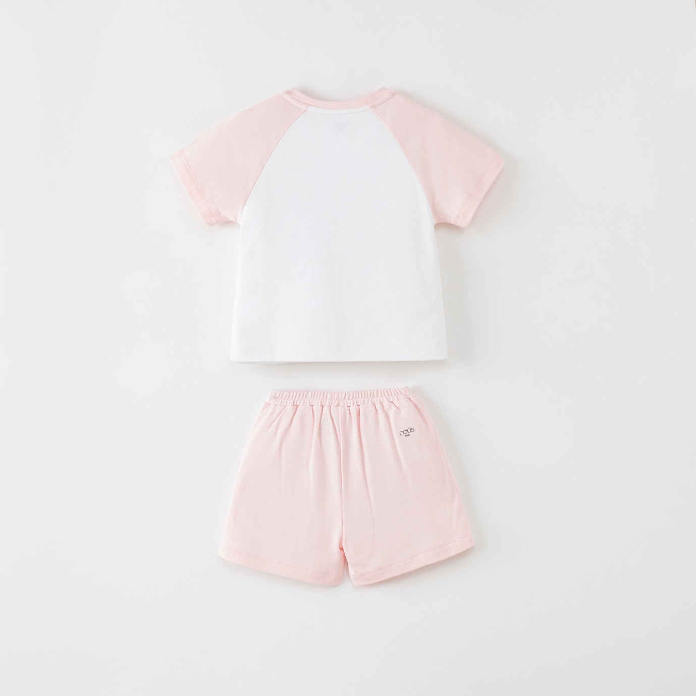 This outfit is carefully designed to prioritize ease of movement and embody a summer style that is suitable for children aged 2 to 6, whether they're attending school or engaging in outdoor activities. The raglan design of the outfit creates a striking contrast between the sleeves and the body, adding a visually appealing element to the overall look.