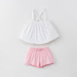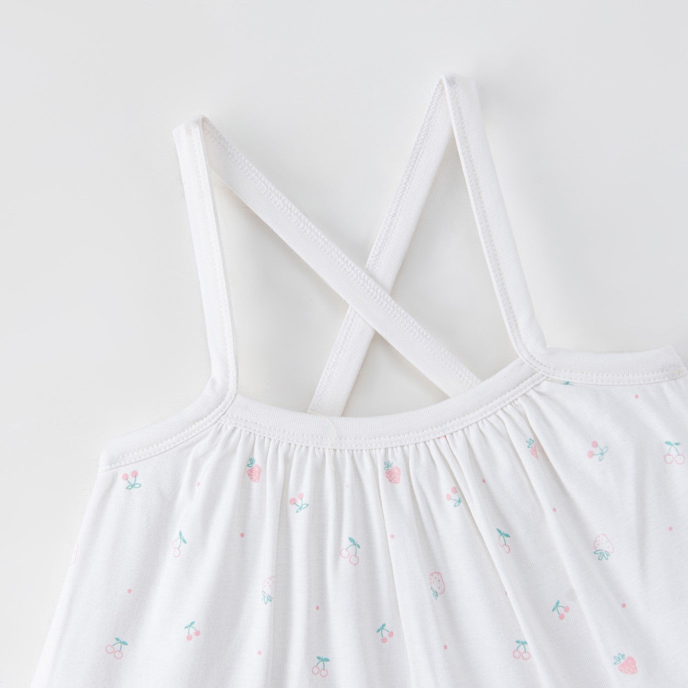 Indeed, the pure white color adorned with small strawberry patterns and a cute bow on the waistband adds an adorable and charming touch to the overall outfit. The combination of the white background with the delicate strawberry patterns creates a sweet and playful look that is perfect for babies and toddlers.