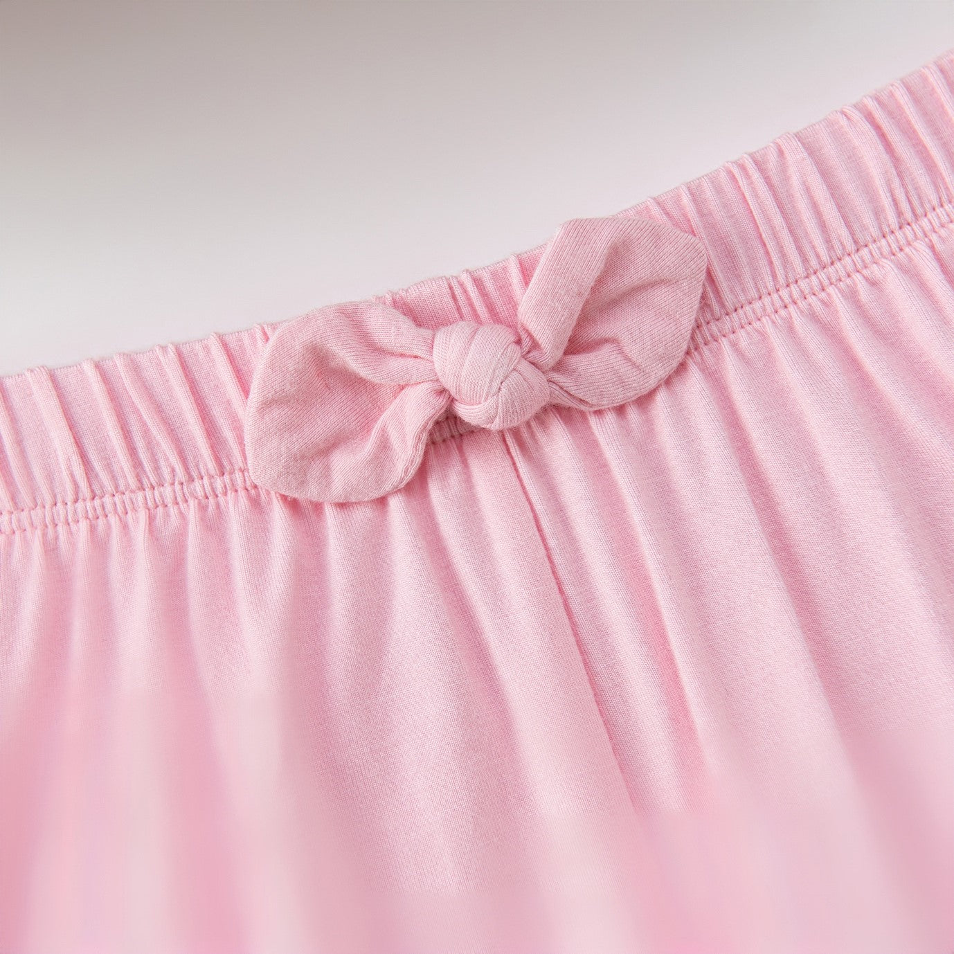 The cute bow on the waistband is an eye-catching detail that enhances the outfit's overall charm. It adds a touch of femininity and cuteness, bringing attention to the waist area and accentuating the baby's adorable figure.